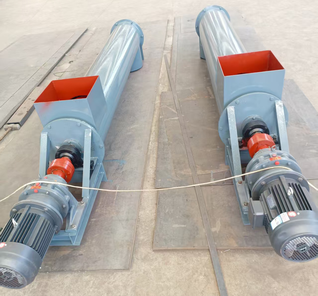 螺旋輸送機廠家供應高品質的螺旋輸送機。型號齊全。下面詳細介紹一下:螺旋輸送機是一種利用電機帶動螺旋回轉,推移物料以實現輸送目的的機械。它能水平、傾斜或垂直輸送,具有結構簡單、橫截面積小、密封性好、操作方便、維修容易、便于封閉運輸等優點。螺旋輸送機在輸送形式上分為有軸螺旋輸送機和無軸螺旋輸送機兩種,在外型上分為U型螺旋輸送機和管式螺旋輸送機。有軸螺旋輸送機適用于無粘性的干粉物料和小顆粒物料.(例如:水泥、粉煤灰、石灰、糧等)而無軸螺旋輸送機適合輸送機由粘性的和易纏繞的物料。(例如:污泥、生物質、垃圾等)螺旋輸送機的工作原理是旋轉的螺旋葉片將物料推移而進行螺旋輸送機輸送,使物料不與螺旋輸送機葉片一起旋轉的力是物料自身重量和螺旋輸送機機殼對物料的摩擦阻力。螺旋輸送機旋轉軸上焊的螺旋葉片,葉片的面型根據輸送物料的不同有實體面型、帶式面型、葉片面型等型式。螺旋輸送機的螺旋軸在物料運動方向的終端有止推軸承以隨物料給螺旋的軸向反力,在機長較長時,應加中間吊掛軸承。